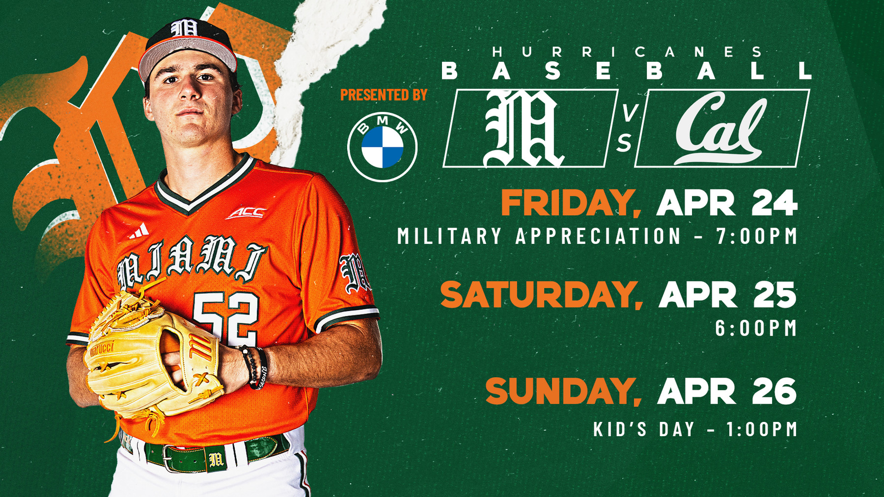The Canes face off against Cal in a weekend series, with the first game kicking off Friday, April 24 at 7 p.m. — see you at The Light!
