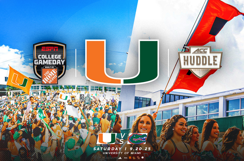 Live from the University of Miami campus—watch College GameDay from 9 a.m. to 12 p.m. on ESPN and ESPNU, and ACC Huddle from 10 a.m. to 12 p.m. on ACCN.
