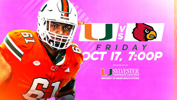 The No. 2 Hurricanes face off against Louisville on Friday, Oct. 17, at 7:00 p.m. The Hurricanes will be defending the Howard Schnellenberger Trophy.