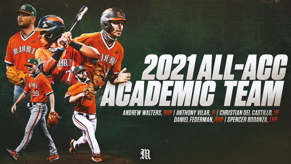 CORAL GABLES, Fla. – Five members of the University of Miami baseball team were named to the 2021 All-ACC Academic Team, as announced by the conference office Thursday.