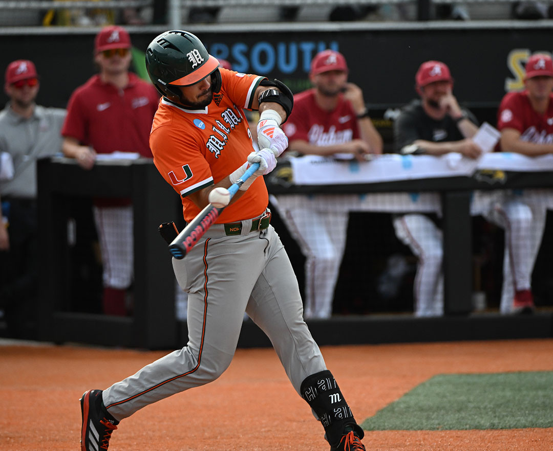 HATTIESBURG, Miss. – The University of Miami baseball team (32-24, 15-14 ACC) opened NCAA Tournament play with a 5-3 victory over second-seeded Alabama (41-17, 16-14 SEC) Friday evening at Pete Taylor Park. The Hurricanes struck early, building a four-run lead behind a two-hit effort from sophomore third baseman Daniel Cuvet, including a three-run home run in the first.