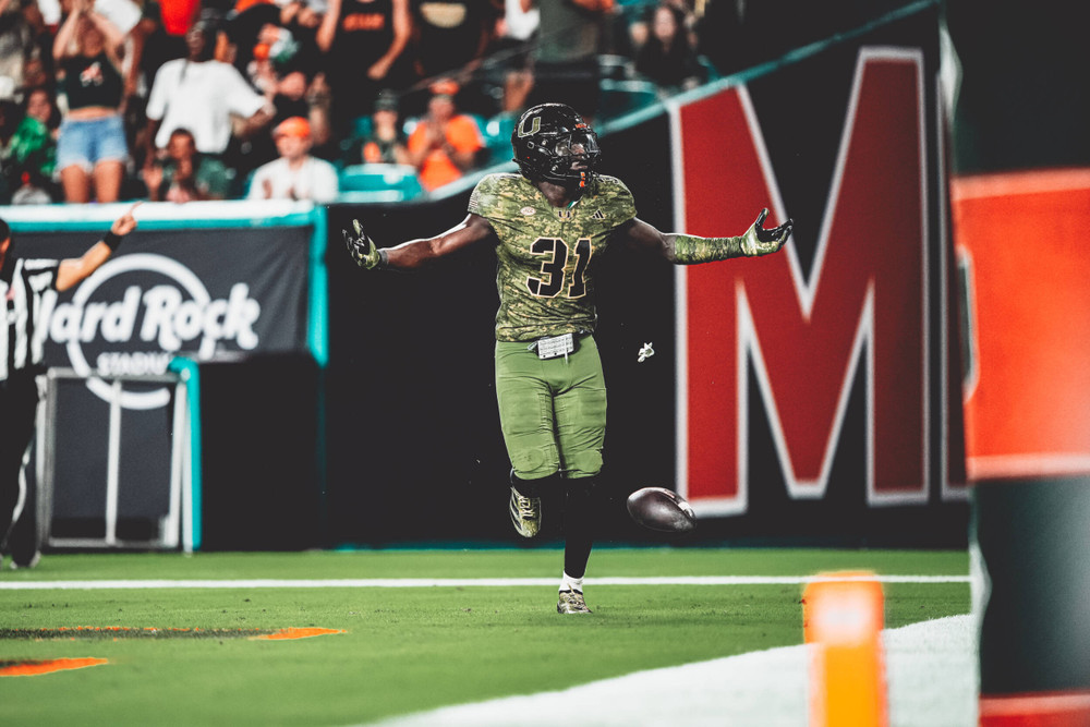 “Certainly proud of the way our guys just stuck with it after starting on the offensive side of the ball, starting a little bit sluggishly. Just maintaining composure,” Miami head coach Mario Cristobal said. “The defense did a phenomenal job after the first drive to shut down the opponent and give us an opportunity to get back in it. Closed out the first half with a scoring drive and that certainly built some momentum. Came out with great defense, great special teams and just started clicking and started playing more Miami Hurricane football.”
