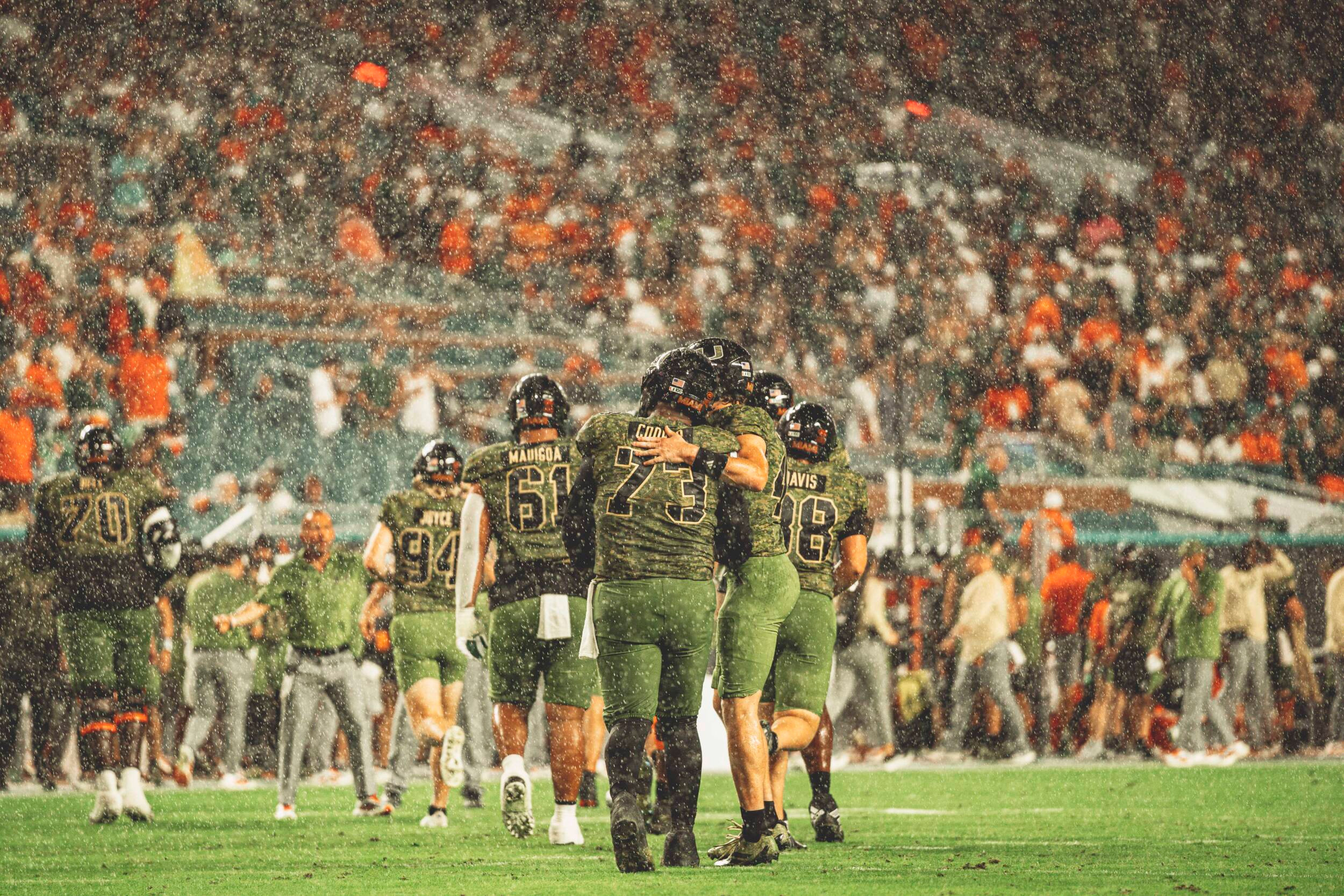“Certainly proud of the way our guys just stuck with it after starting on the offensive side of the ball, starting a little bit sluggishly. Just maintaining composure,” Miami head coach Mario Cristobal said. “The defense did a phenomenal job after the first drive to shut down the opponent and give us an opportunity to get back in it. Closed out the first half with a scoring drive and that certainly built some momentum. Came out with great defense, great special teams and just started clicking and started playing more Miami Hurricane football.”
