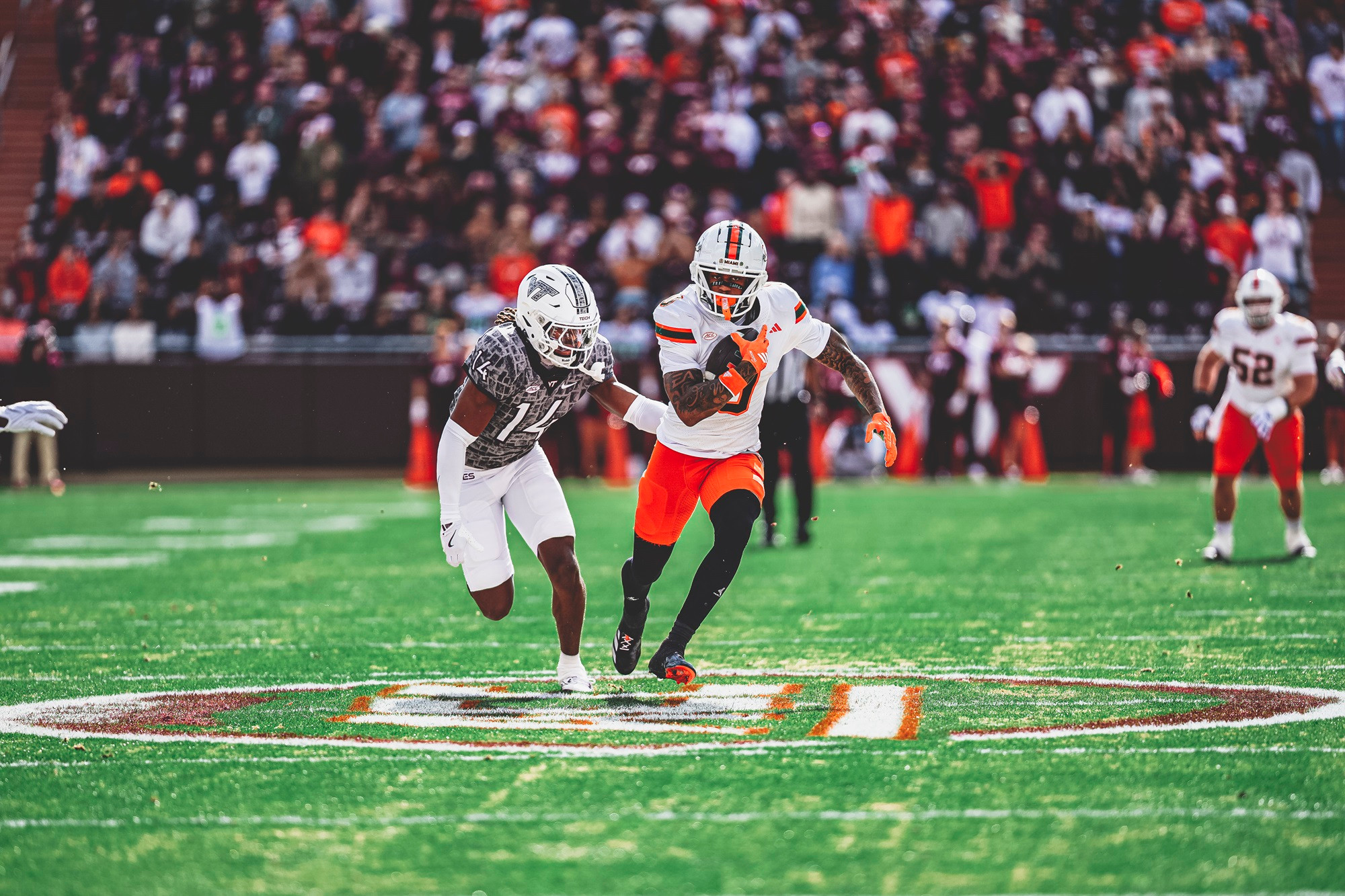 Safety Zechariah Poyser racked up 10 tackles, one sack and a fumble recovery, while defensive end Akheem Mesidor recorded five stops, one sack and two forced fumbles. Defensive tackle Ahmad Moten registered five tackles and a sack and linebacker Wesley Bissainthe added six tackles. Miami’s defense allowed a season-high 194 rushing yards but held Tech to just 3 of 12 on third down.
