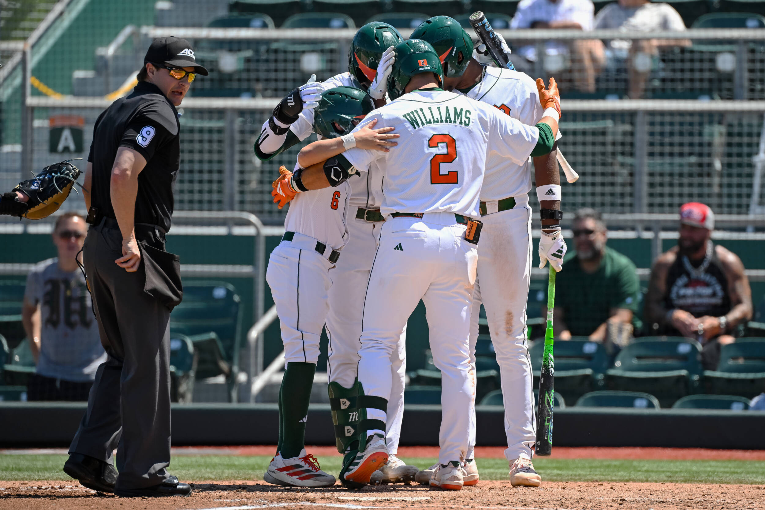 But Miami responded immediately, and with authority, in the next bottom half. The Hurricanes went back-to-back-to-back, beginning with a solo shot from Alex Sosa to right. Derek Williams followed with a home run to right-center, and Brylan West capped the surge with a blast to left-center, pushing the lead to 6-2 in a matter of three consecutive swings.
