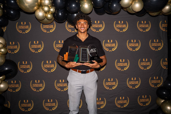 The sprinter was an ACC Top Six for Service Award winner, was recognized as the male Comeback Athlete of the Year after returning from injury to put together a string of dominant performances and earned Miami’s Ibis Award, the department’s highest honor, which is given annually to the student-athlete that most embodies success across athletics, academics, community service and overall engagement.